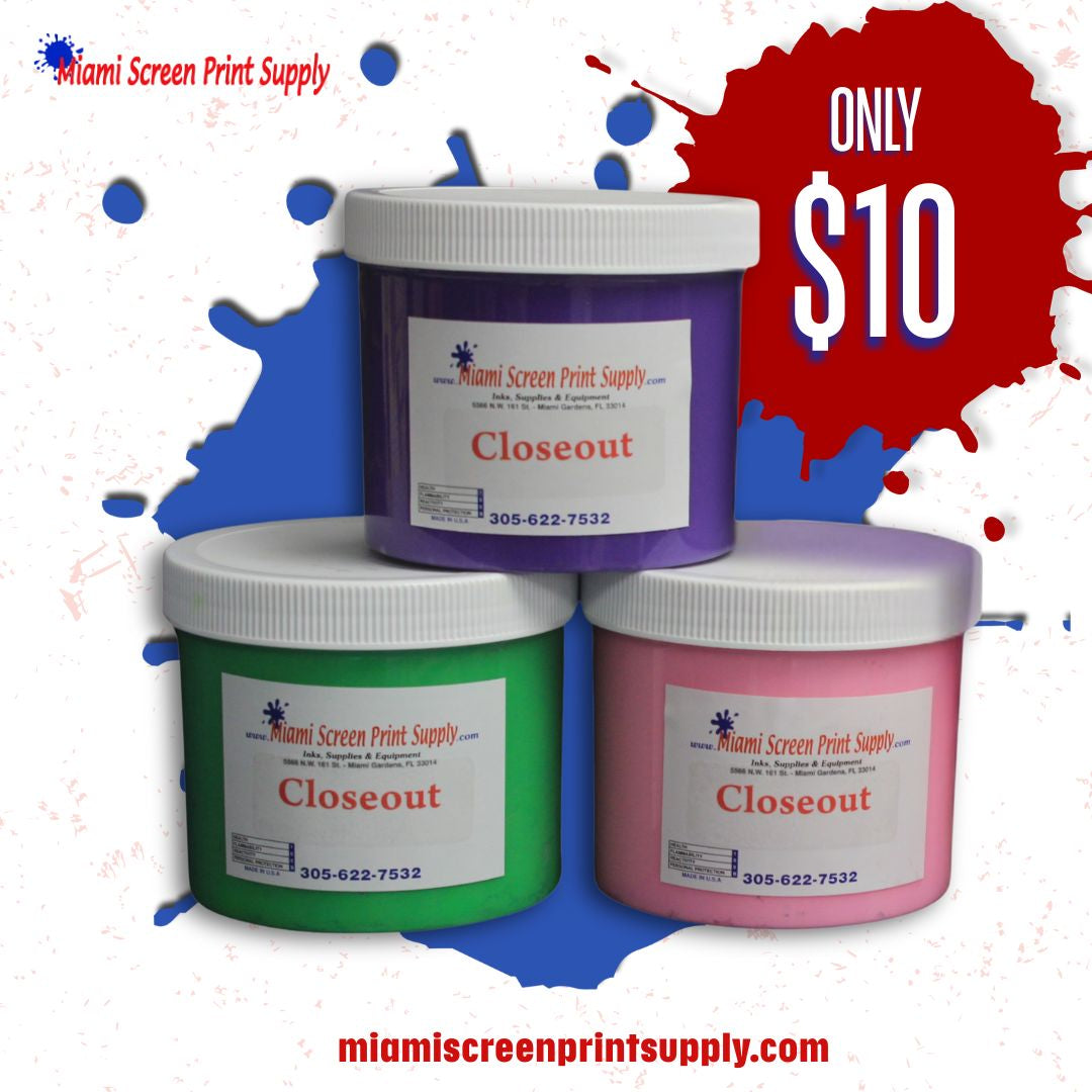 Attention screen printers! Miami Screen Print Supply offers amazing deals on plastisol closeout inks in quart sizes.
